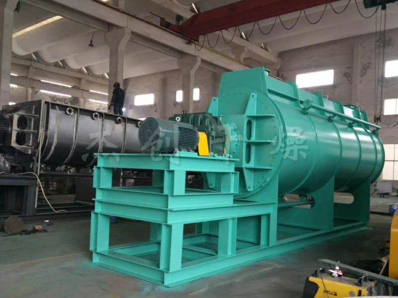 污泥槳葉干燥機以^快速度使得污泥在干化過程中迅速沖過“膠粘化相區域”。同時巧妙的結構使得污泥在干化過程中達到了雙向剪切狀態。被干燥的污泥由螺旋送料機定量地連續送入干燥機的加料口,污泥···